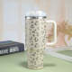 40oz Insulated Mug with Handle and Straw Colorful Leopard Pattern Stainless Steel Travel Cup Gift for Family Friends Couples