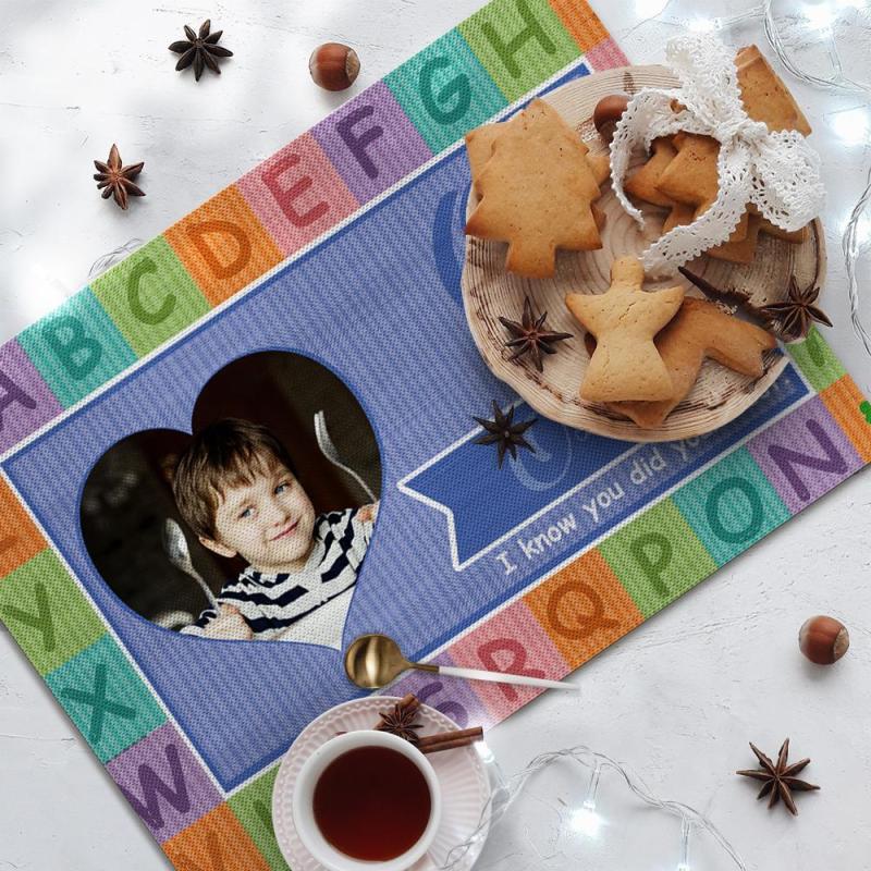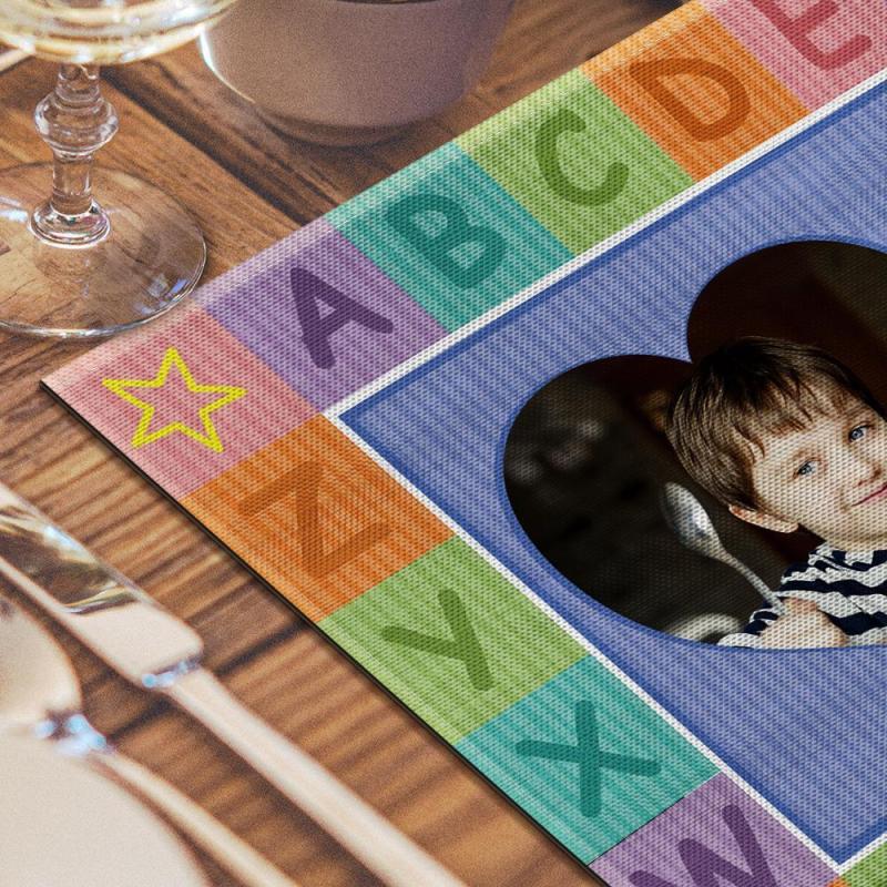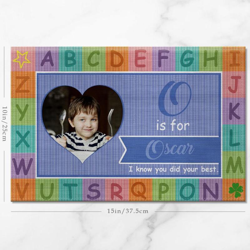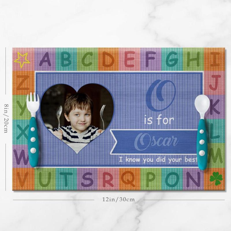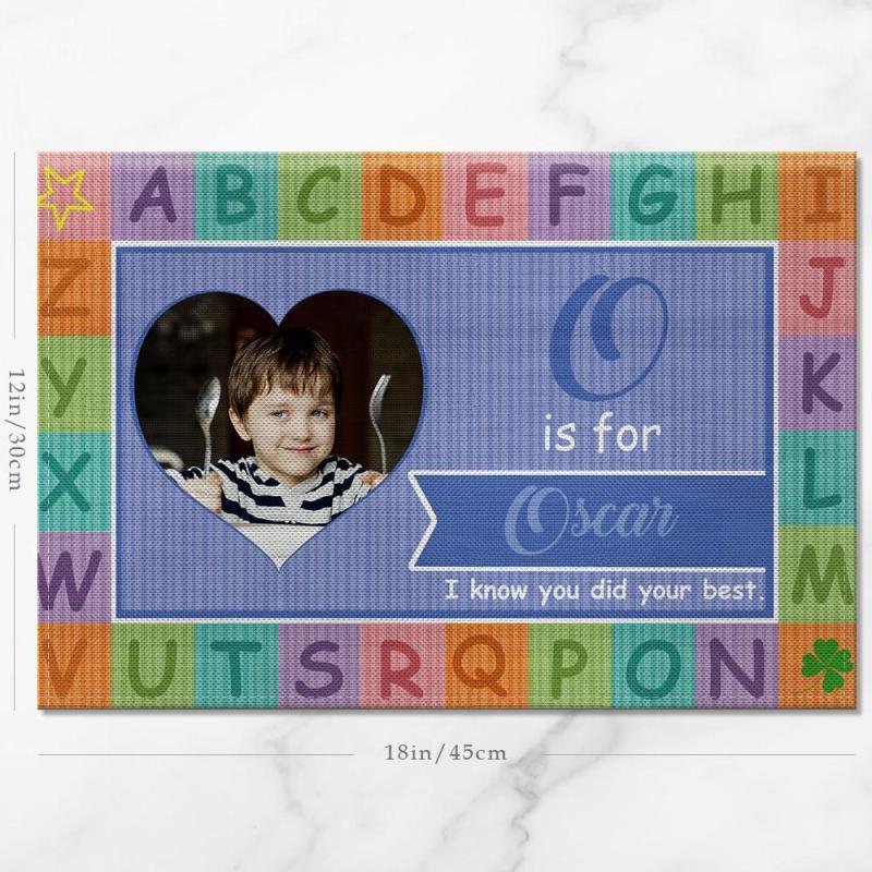 Custom Alphabet Blue Theme Photo Placemat With Text - For Boy