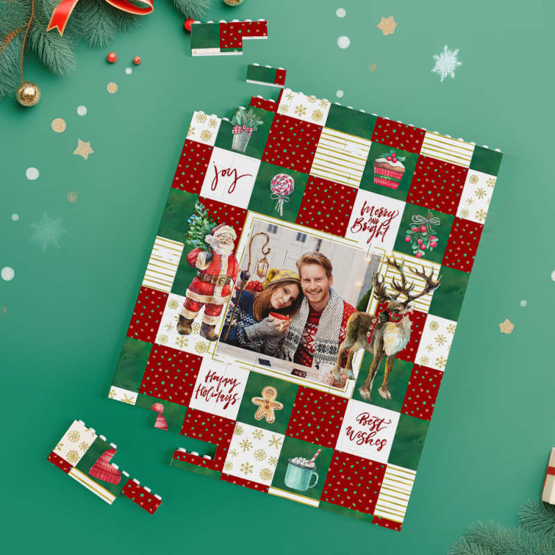 Custom Building Block Puzzle Vertical Building Photo Bricks Best Wishes Happy Hoildays