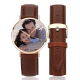 Custom Engraved Rose Gold Photo Watch Brown Leather Strap