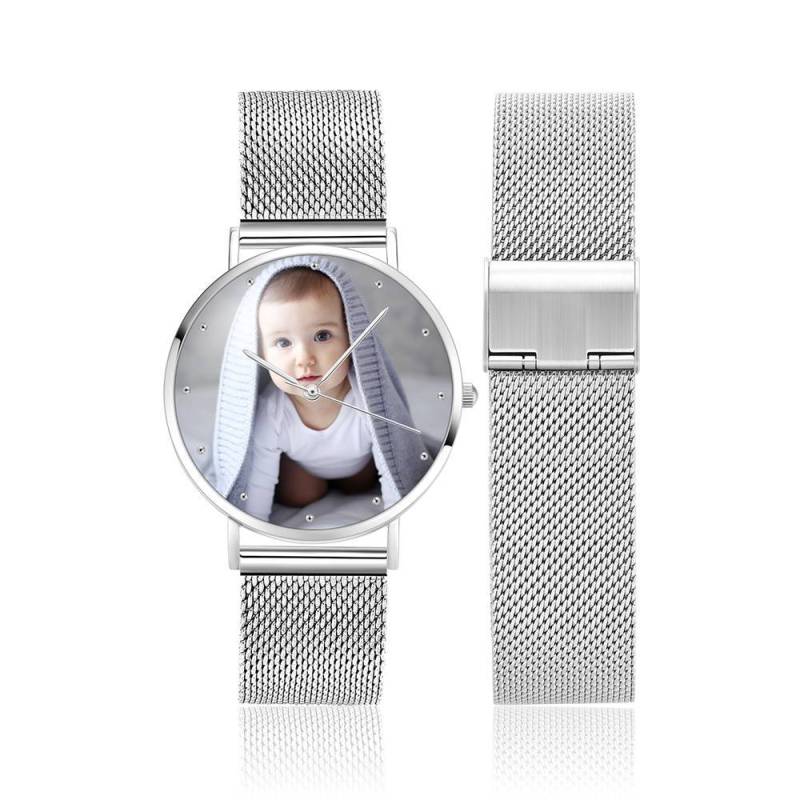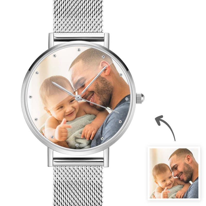 Custom Engraved Silver Alloy Photo Watch