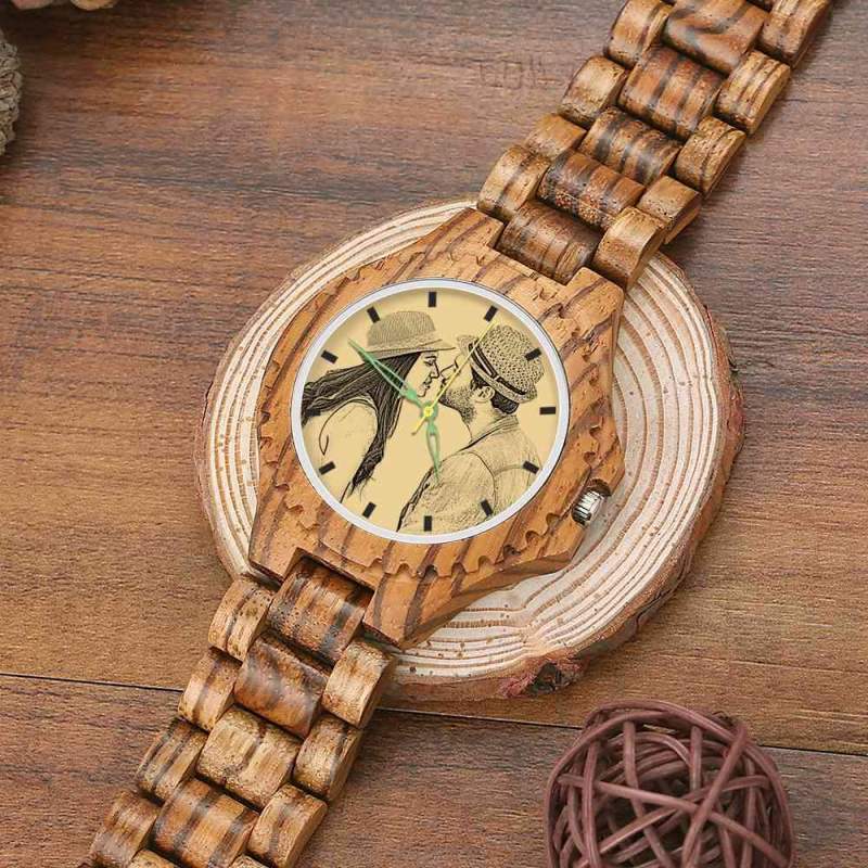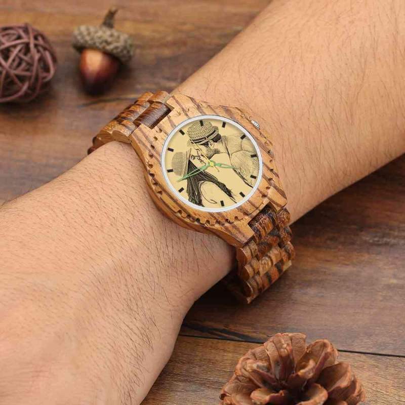 Custom Engraved Wooden Photo Watch Wooden Leather Strap