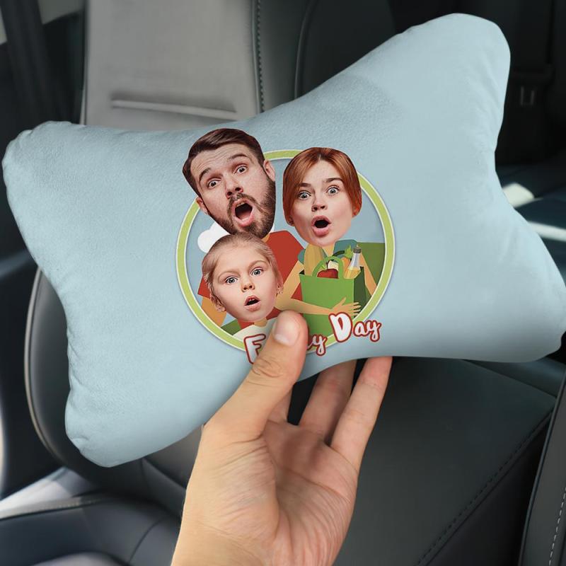 Custom Face Car Neck Pillow Family Theme With Your Photo