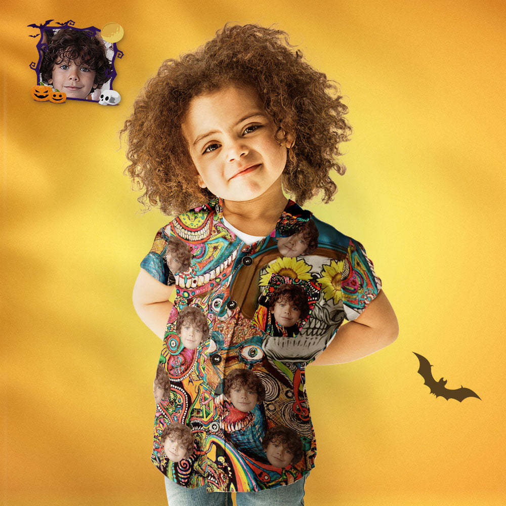 Custom Face Halloween Hawaiian Shirt Kid's Skull Flower Print Personalized Hawaiian Shirt