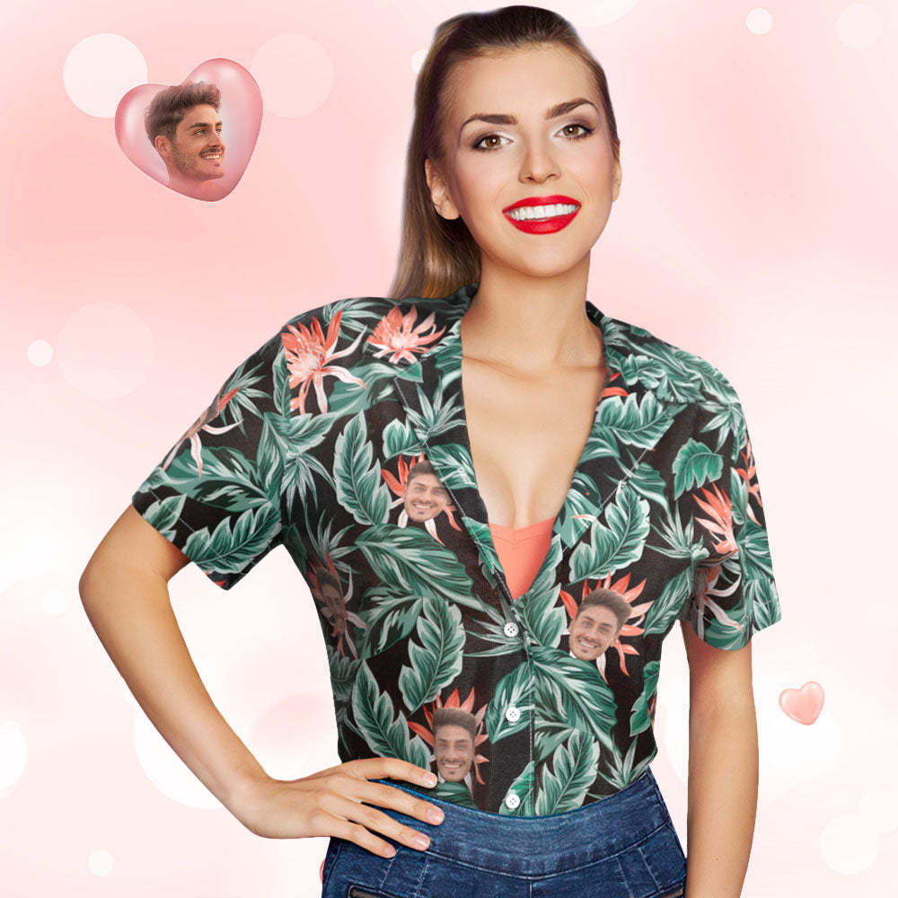 Custom Face Polo Shirts Personalized Women Photo Shirt Green Leaves Gift For Her