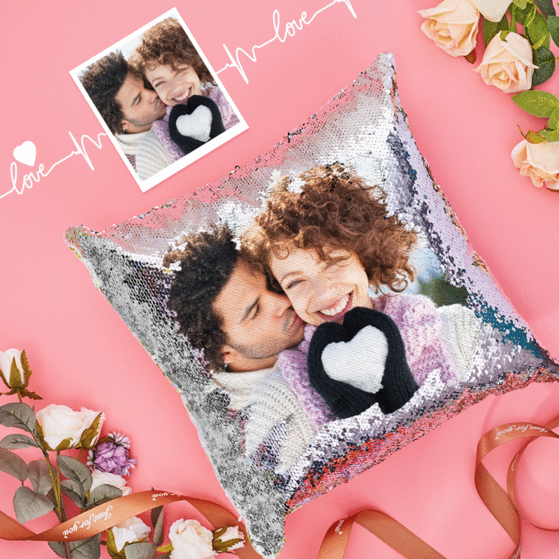 Customized Sequin Pillow, Personalized Sequin Pillows, Custom Love Photo Magic Sequins Pillow Case, Multicolor 15.75''*15.75'', Best Gift For Her