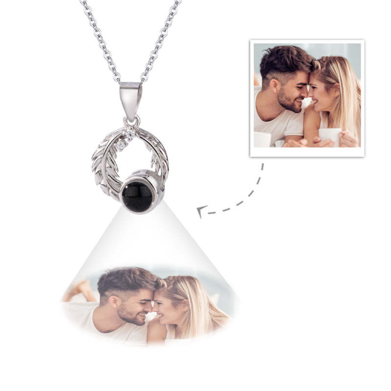 Custom Projection Necklace Leaves Photo Necklace Gift for Couples
