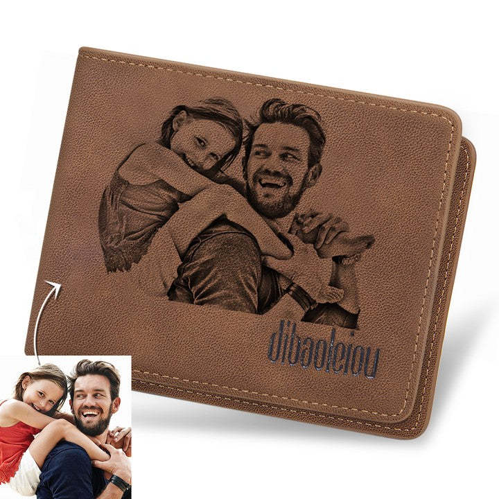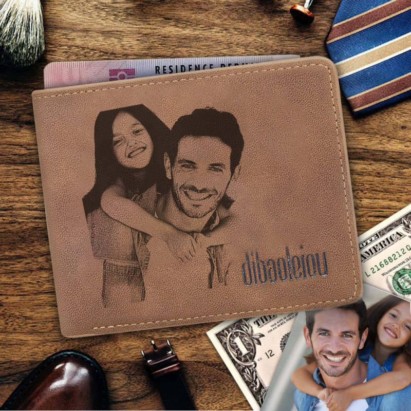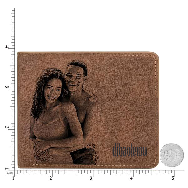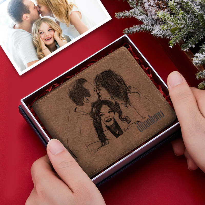 Custom Sketch Photo Wallet Personalized Engraved Leather Mens Wallet Anniversary Gift For Him