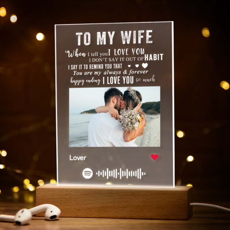 Custom With Photo Engraved Text Night Light Acrylic Plaque Anniversary Gift
