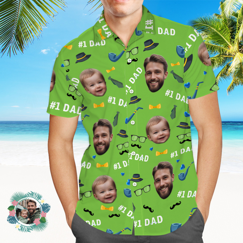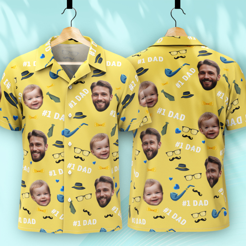 Father Custom 1-2 Face With Exotic Tiki Pattern Personalized Photo Hawaiian Shirt