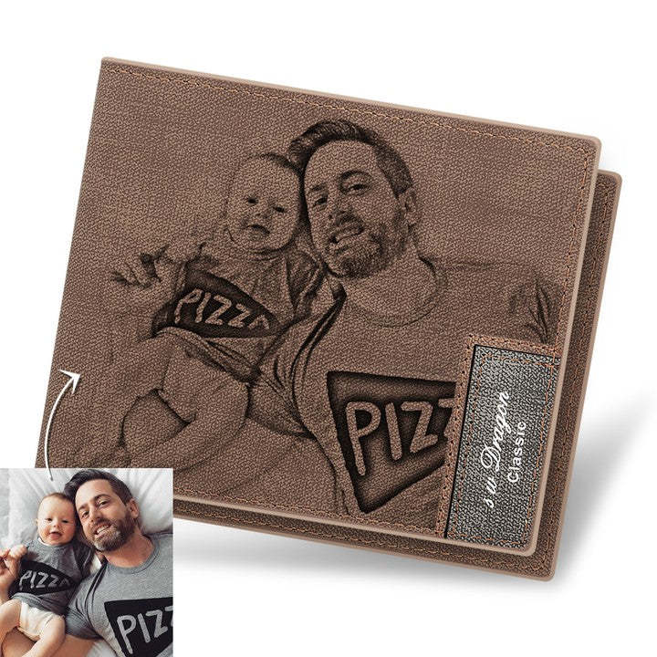 Gift for Dad Custom Photo Wallet Personalized Mens Wallet Engraved Leather Wallet for Men