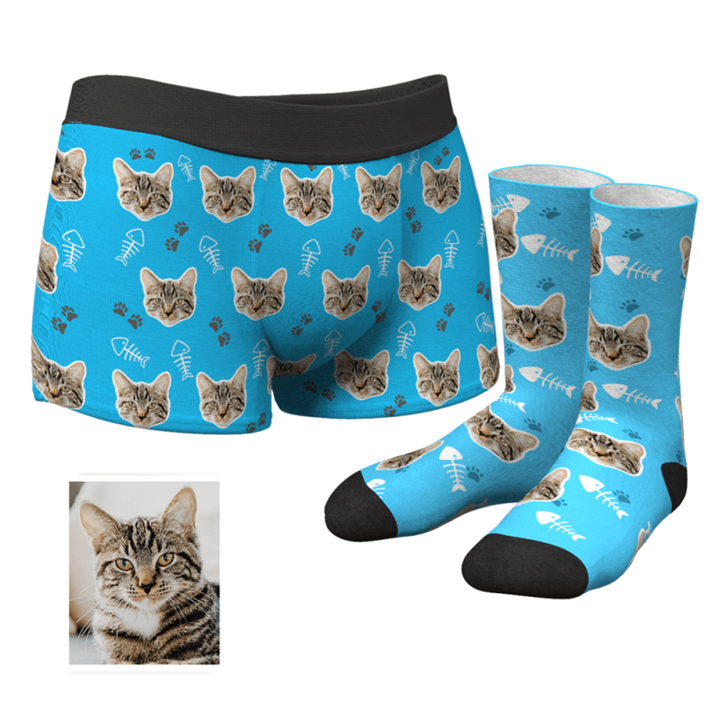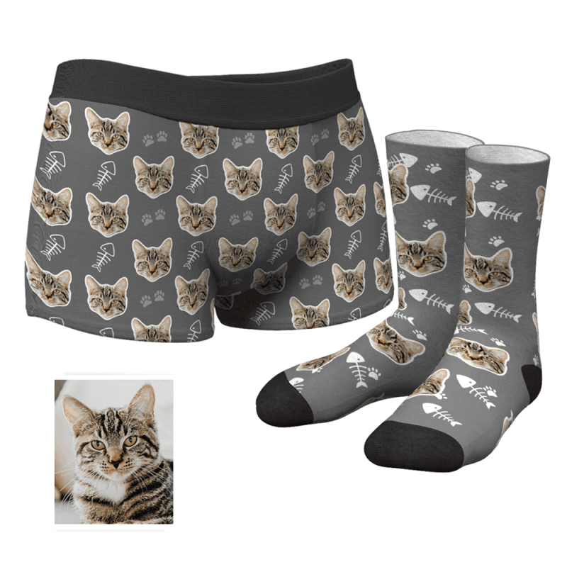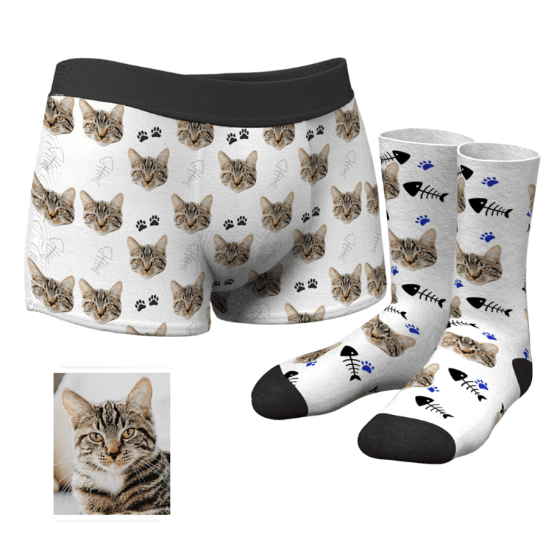 Men's Custom Cat Boxer Shorts And Socks Set