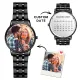 Men's Engraved Photo Watch Calendar Black Alloy Bracelet Gift for Couple