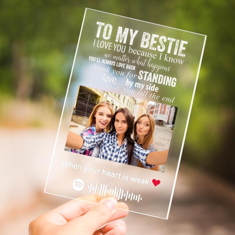 Personalized Photo Engraved Text Spotify Acrylic Plaque Best Besties Ever Gifts for Her