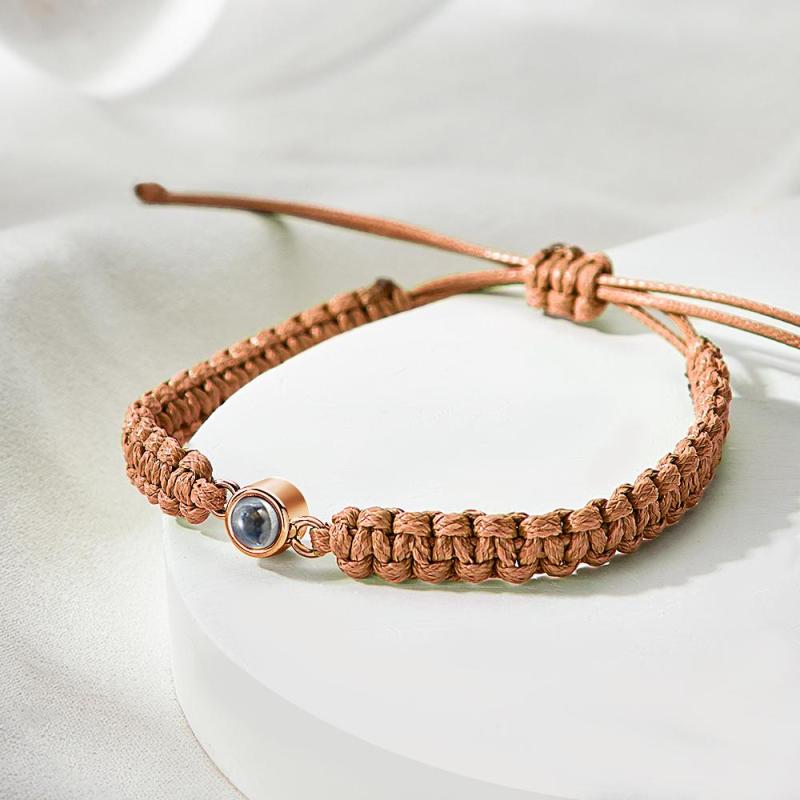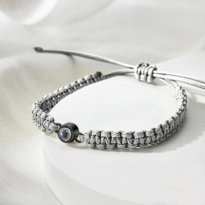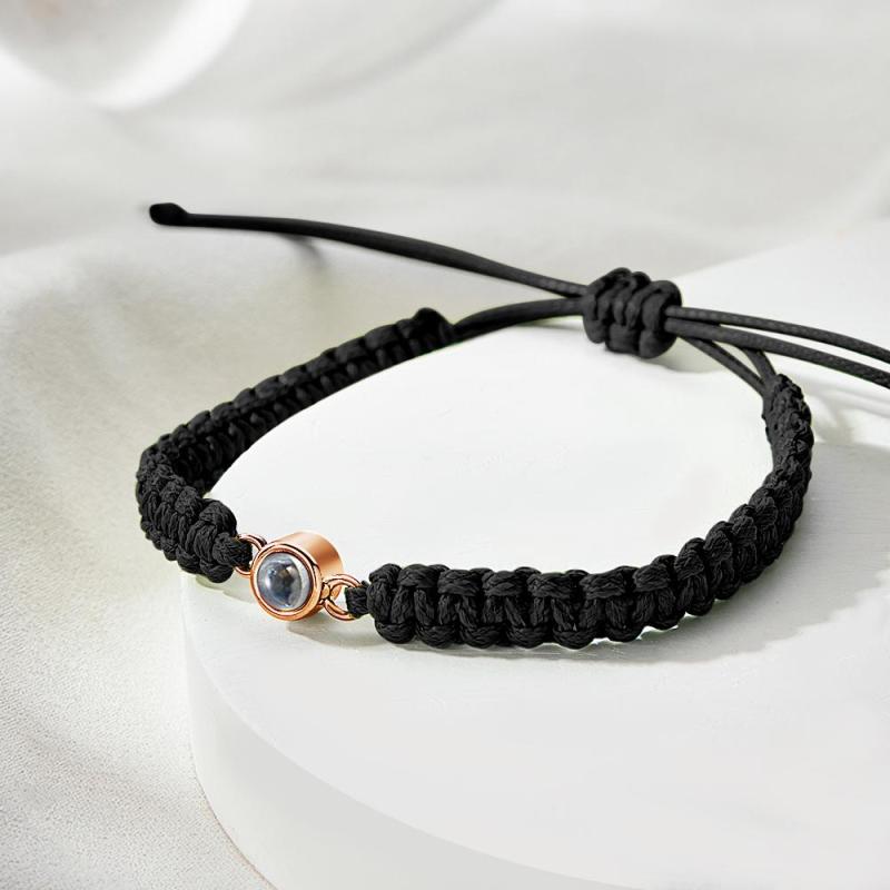 Personalized Braided Photo Projection Bracelet Fishtail Rope Men's Bracelet Hand Braided Bracelet Gift for Men