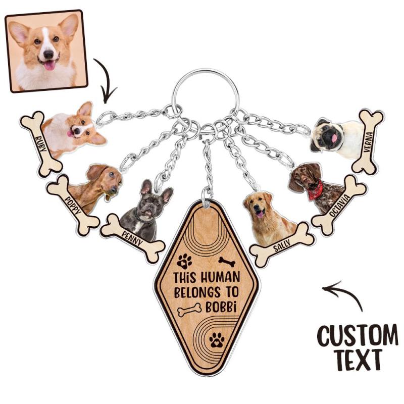 Personalized Dog Bone Photo Keychain Custom Text Gift for Pet Lovers