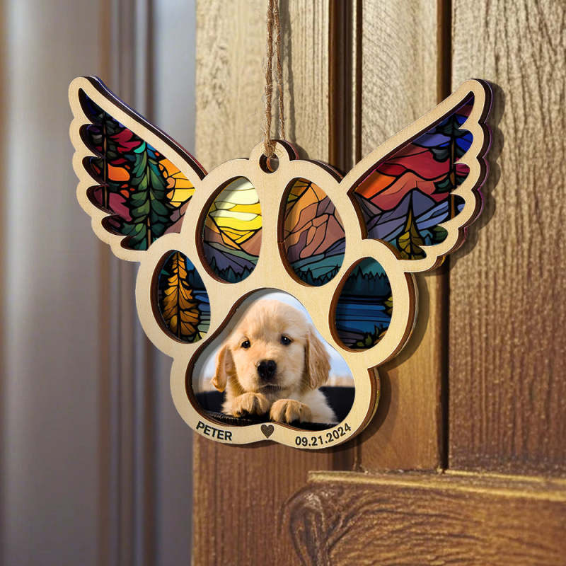 Personalized Pet Suncatcher Ornament with Photo Paw Print Ornament Memorial Gift for Pet Lovers