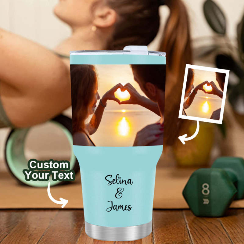 Personalized Photo and Text Insulated Mug Custom 30oz Travel Cup with Lid Gift for Couple Family Friends