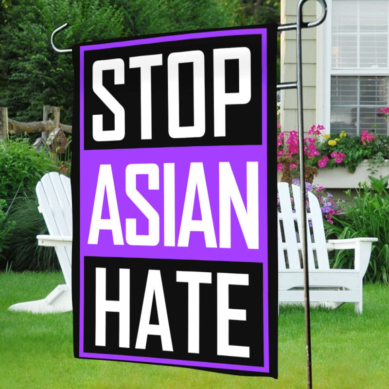 Stop Asian Hate Garden Flag Purple We Are All Travelers of The Earth