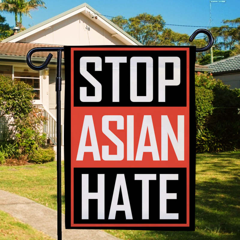 Stop Asian Hate Garden Flag Red We Are All Travelers of The Earth